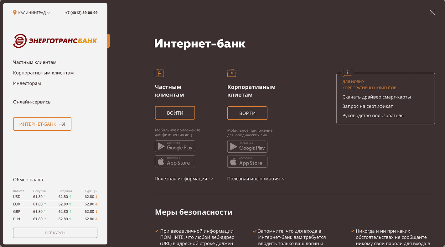 Основная задача попапа «Интернет-банк» – отобразить элементы входа и остальную информацию так, чтобы они не мешали друг другу, но и были на виду у клиента.